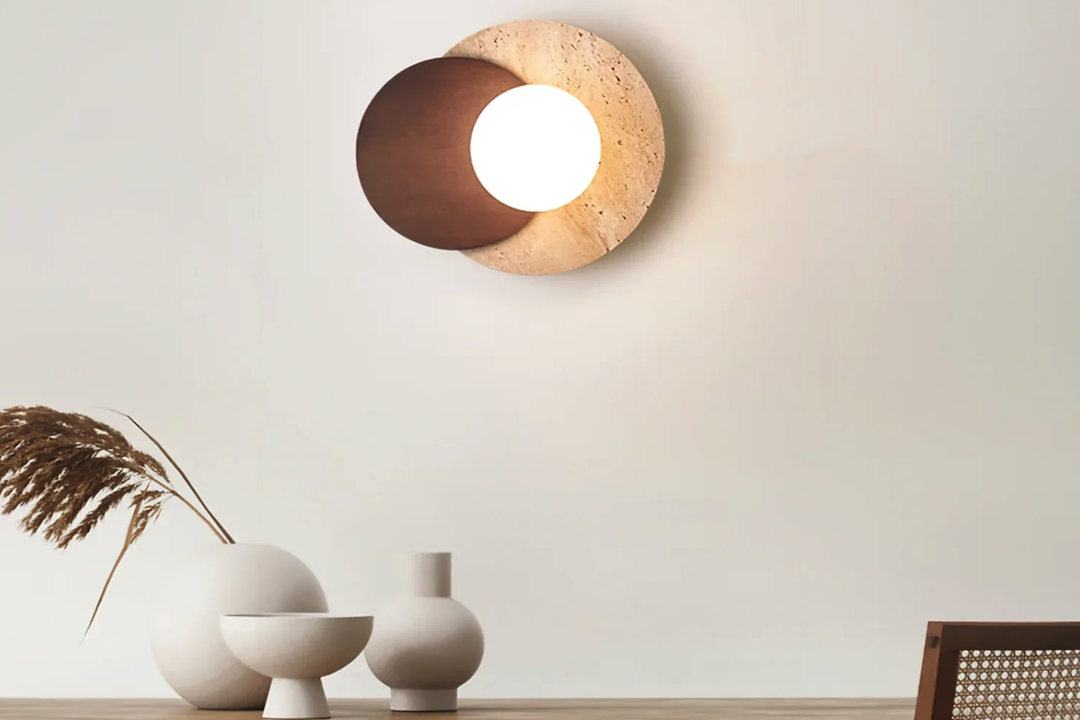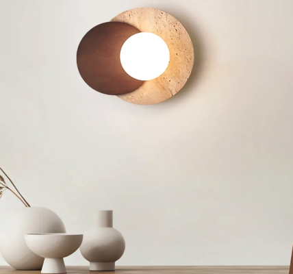 Timeless Elegance: Vintage Travertine Eclipse Wall Lamp